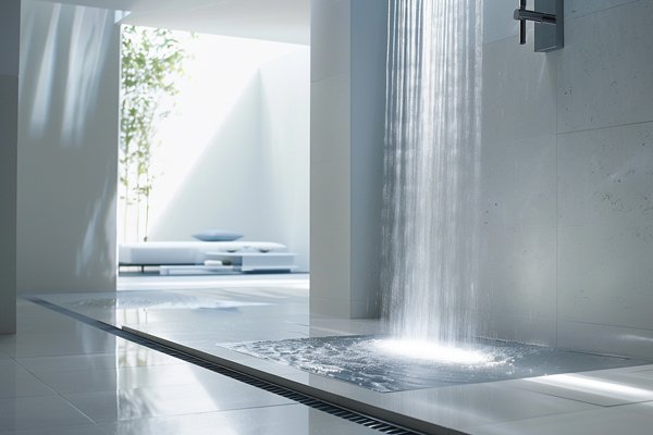 Optimal positioning of linear shower drains5 plays a key role in efficiency.